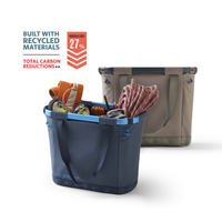 A gear tote designed for quick and easy access, made with a collapsible, aluminum frame, connected to a flexible base for durability and protection. Designed to fit behind the front seat of your vehicle to make use of the footwell space, this tote quickly packs down to save space when not in use and comes with a storage stuff sack. Complete with grab handles and made from blended recycled fabric to minimize its carbon footprint.