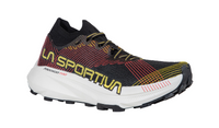 The La Sportiva Prodigio Pro is the ultimate high-cushion trail racing shoe, designed to keep you fast and efficient over any distance. It takes the lightweight DNA of the original Prodigio and levels up with high-performance materials for a more responsive ride—all without changing the dialed-in stack height and drop.