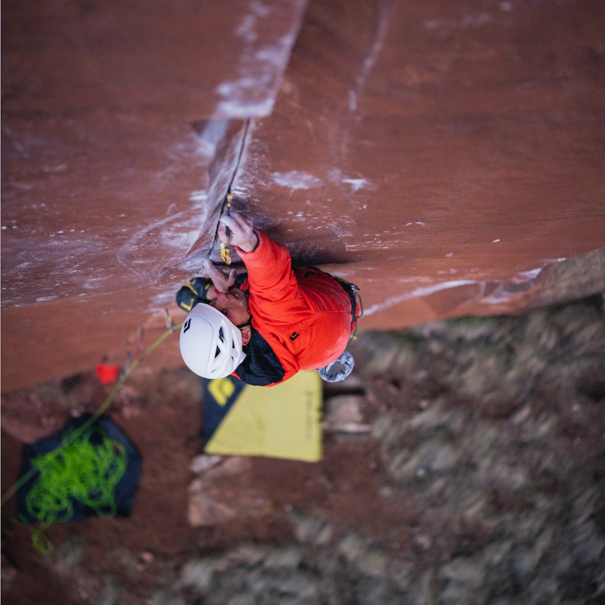 - Adjustable, climbing-helmet-compatible hood with drawcord adjustment
