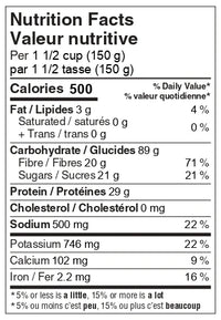 Ingredients: Textured vegetable protein (defatted soy flour, caramel colour), white rice, black bean, tomato, corn, spinach, bell pepper, carrot, onion, garlic, salt, jalapeno, lime, cilantro, natural spices, and herbs.