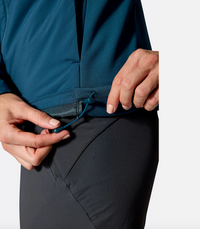 - Two zipped hand pockets, one of which doubles as an integrated storage pocket which you can stuff the jacket into and clip to your harness on the climb.
