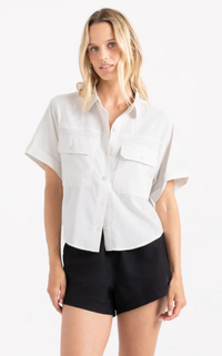Our best-selling Bless Up gets a fresh new cut. The Bless Up Cropped brings the same ultra-lightweight, breathable stretch fabric you love—now reimagined with a modern cropped silhouette that hits right at the hips. Designed with cuffed sleeves and dual front chest pockets for added utility and style, it's your go-to for hot days, high output, and spontaneous adventure. Same function. New form.