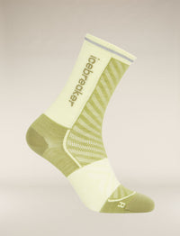 Thin, ultralight running socks made with a technical merino wool blend and crew height, the Run+ Ultralight Crew Fusion Dye feature reflective details at the cuff. Inspired by the seasonal theme of FUSION, the graphic explores the dynamism of wordly forces, the energy of nature and the power of running the trail.